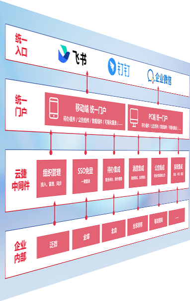 对协作平台提供支持服务,,,支持企业应用与协作平台对接,,,包含组织同步、、消息集成、、待办集成等。。。支持目前主流的协作平台:钉钉、、、、企微和飞书。。。。
